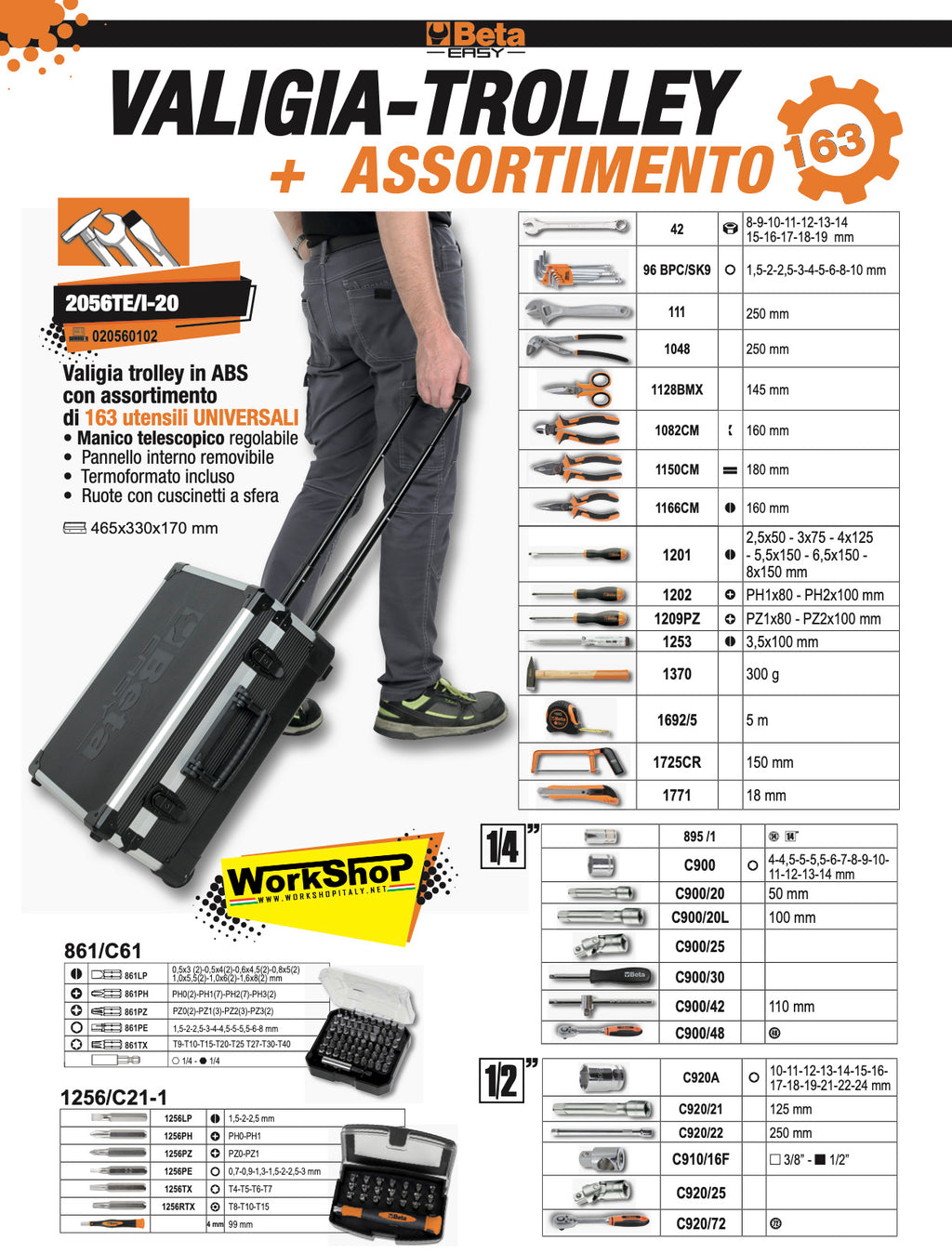 Valigia con trolley Beta Easy 2056TE/I-20 Completa di 163 utensili.