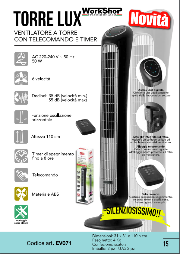 Ventilatore a torrre SILENZIOSISSIMO Cfg TORRE LUX EV071
