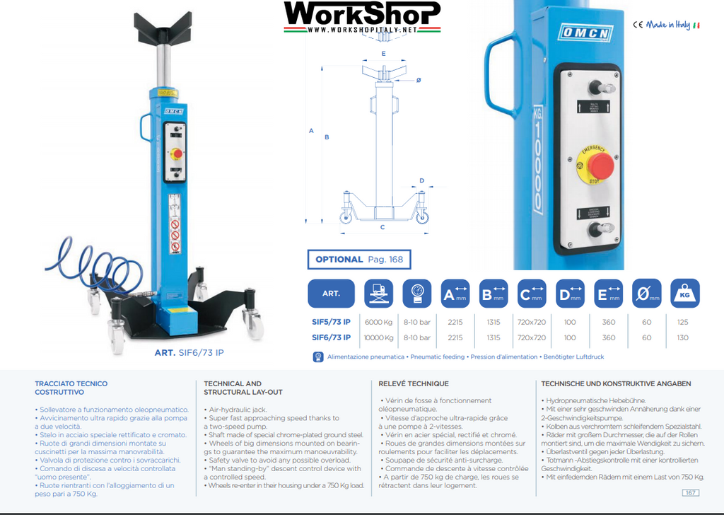 Sollevatore per ruote e pneumatici OMCN SIF5/73 IP SIF6/73 IP