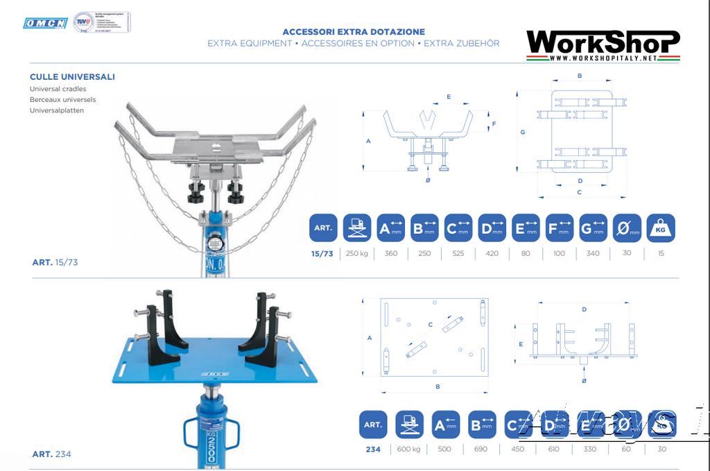 Culle universali per sollevatori da fossa Omcn 15/73 - 234