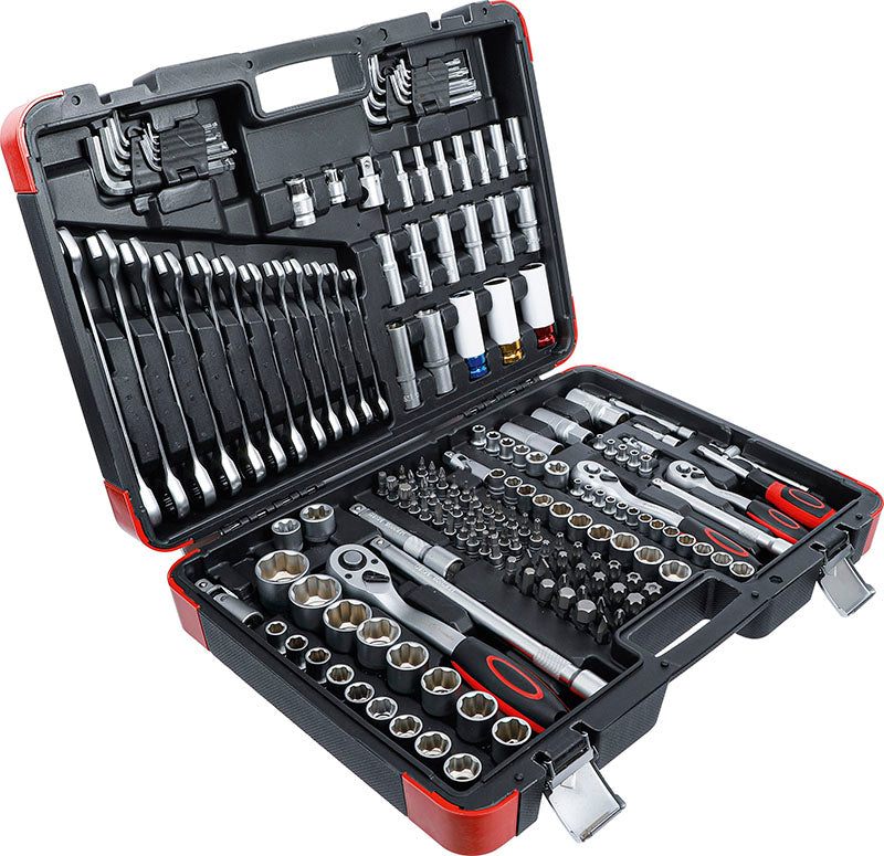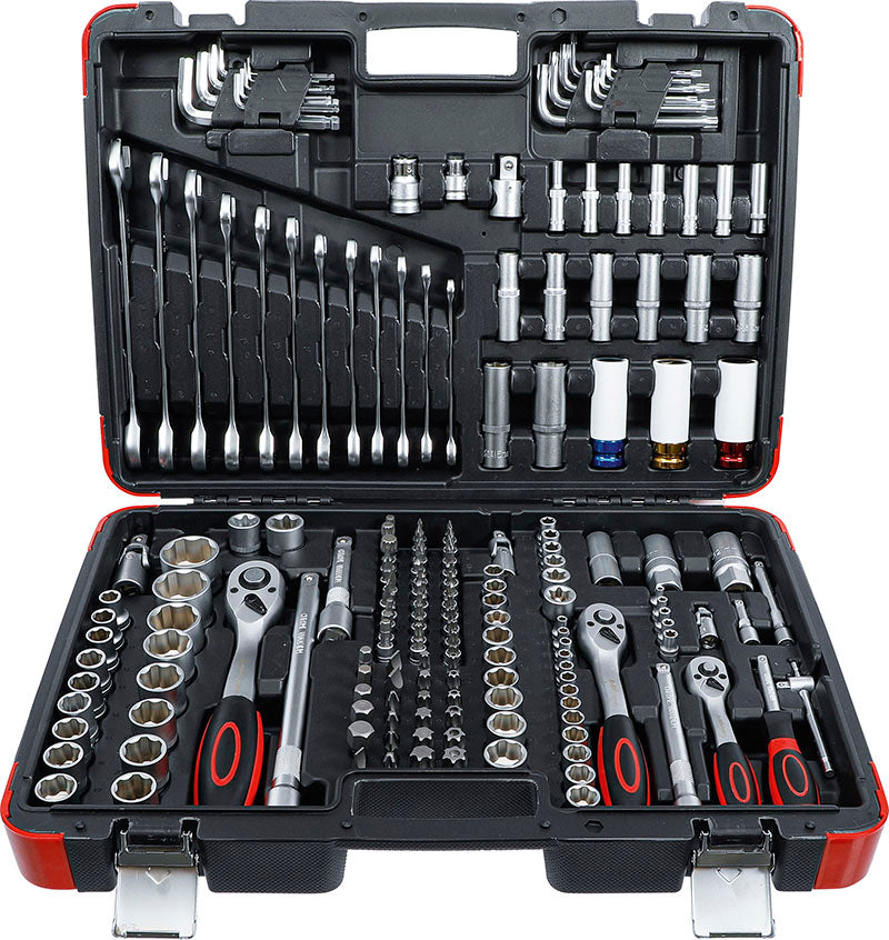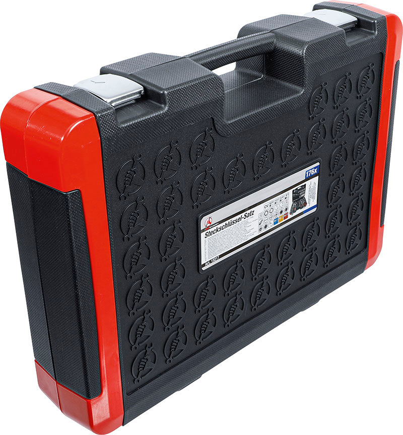CASSETTA 176 PEZZI, CON BUSSOLE SURFACE DRIVE E CHIAVI COMBINATE A CRICCHETTO BGS15217