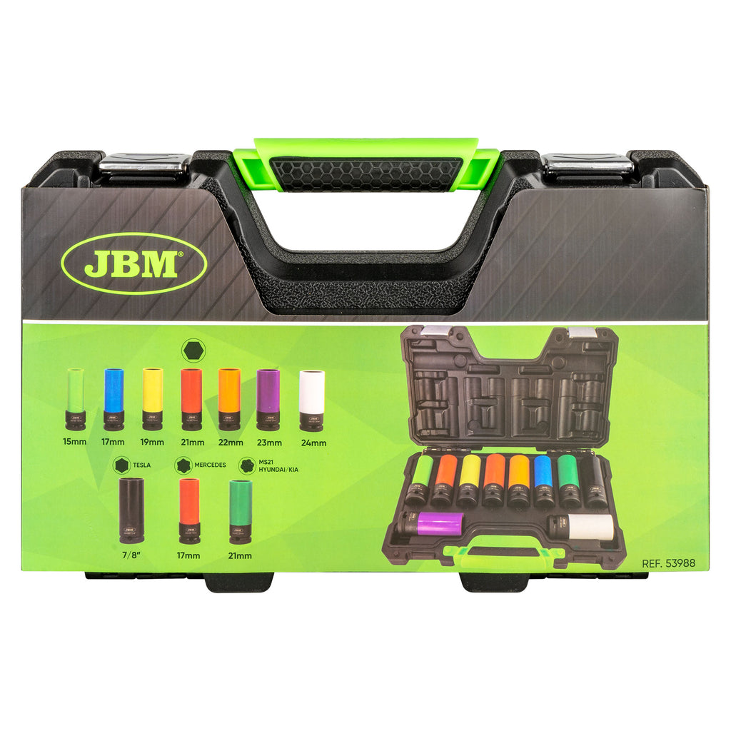 53988 KIT 10 BUSSOLE PNEUMATICHE 1/2" + 53608 AVVITATORE PNEUMATICO DA 1/2" 1200NM JBM