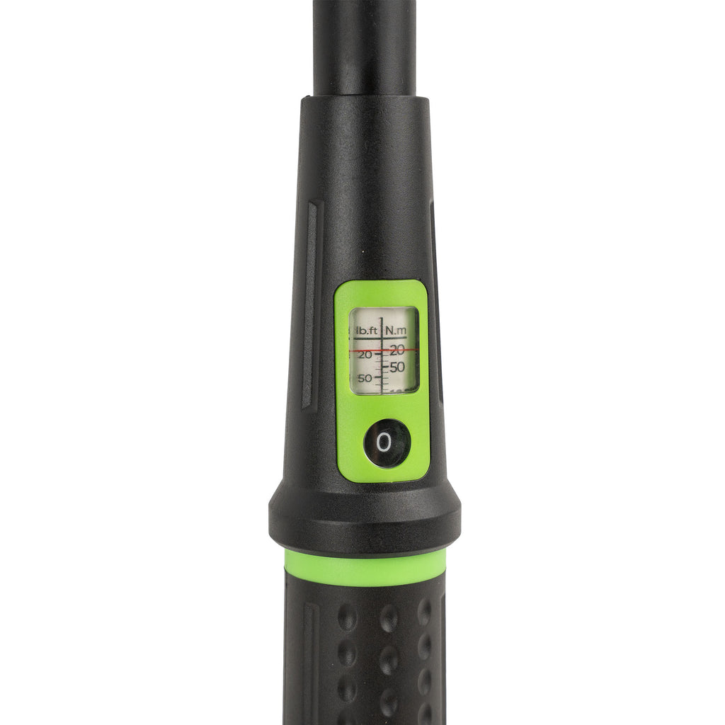 Include una chiave dinamometrica da 1/2" (20–200 Nm) con finestra di lettura precisa, 3 bussole ad impatto (17, 19 e 21 mm) lunghe 85 mm e una barra di prolunga da 125 mm.