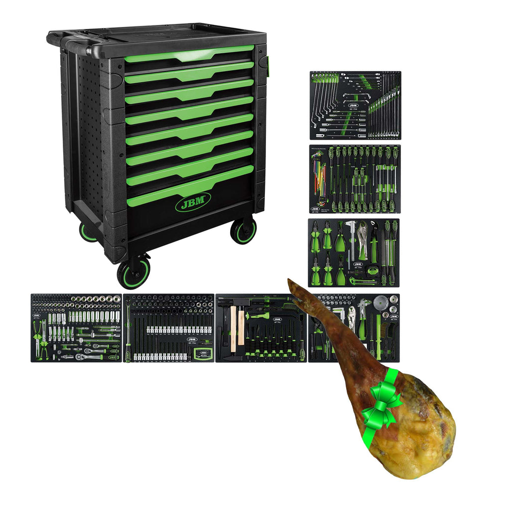 CARRELLO PORTAUTENSILI A 8 CASSETTI ASSEMBLATO CON 289 PEZZI JBM 54718 + 6kg. prosciutto iberico