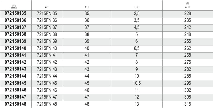 Note:• Estremamente flessibili e leggere - peso indicativo misura 42: 490 g