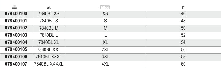 Taglie:XS, S, M, L, XL, 2XL, 3XL, 4XL