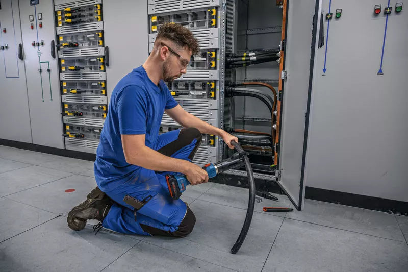 Quando si tagliano cavi in rame e in alluminio, serve un utensile robusto che offra tagli puliti e di alta qualità. È qui che entra in gioco la GKH 18V-50. Con questo utensile, il faticoso taglio manuale dei cavi è un ricordo del passato grazie alle sue lame speciali e alle funzioni complete di monitoraggio della pressione. Il LED di stato fornisce un feedback sullo stato e sulla manutenzione dell’utensile, garantendo il controllo totale. E con la funzione di rilascio manuale della pressione è sempre possibile ritrarre l’utensile.