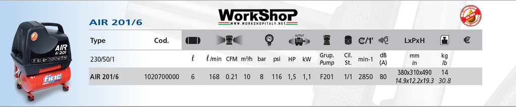 Compressore FIAC AIR 201/6 6 lt. 1,5HP
