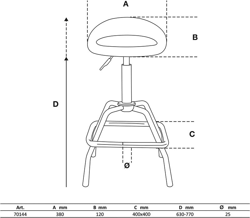 • struttura in tubo d’acciaio con 4 piedini • regolazione continua dell’altezza del sedile